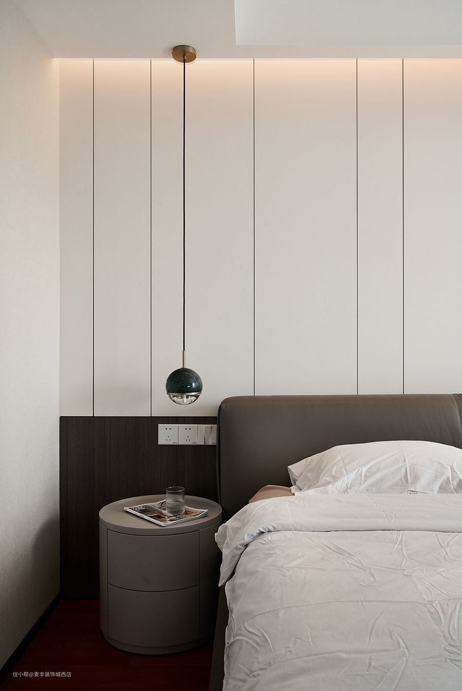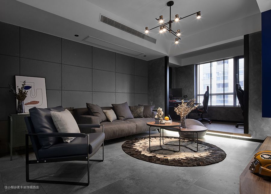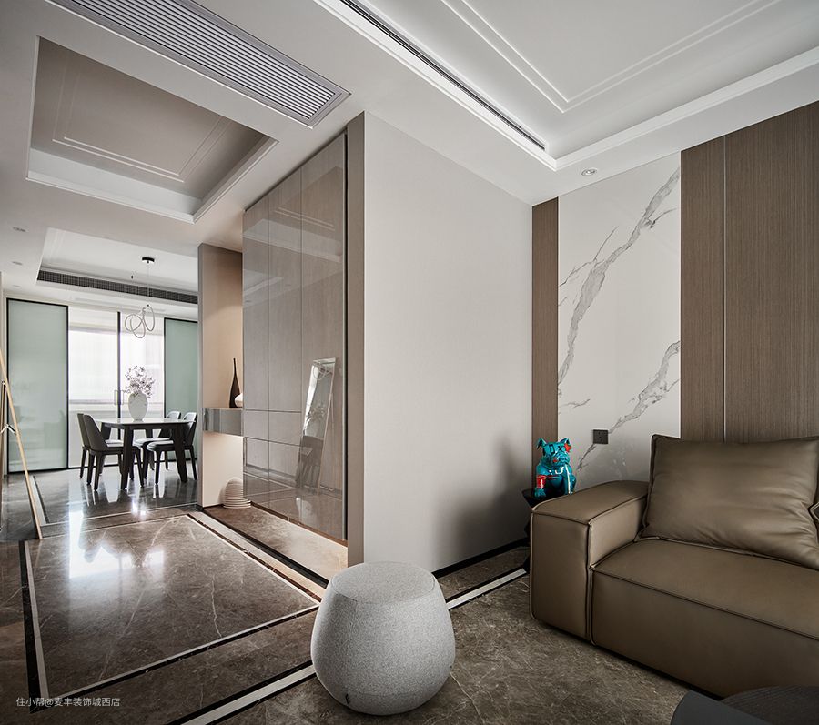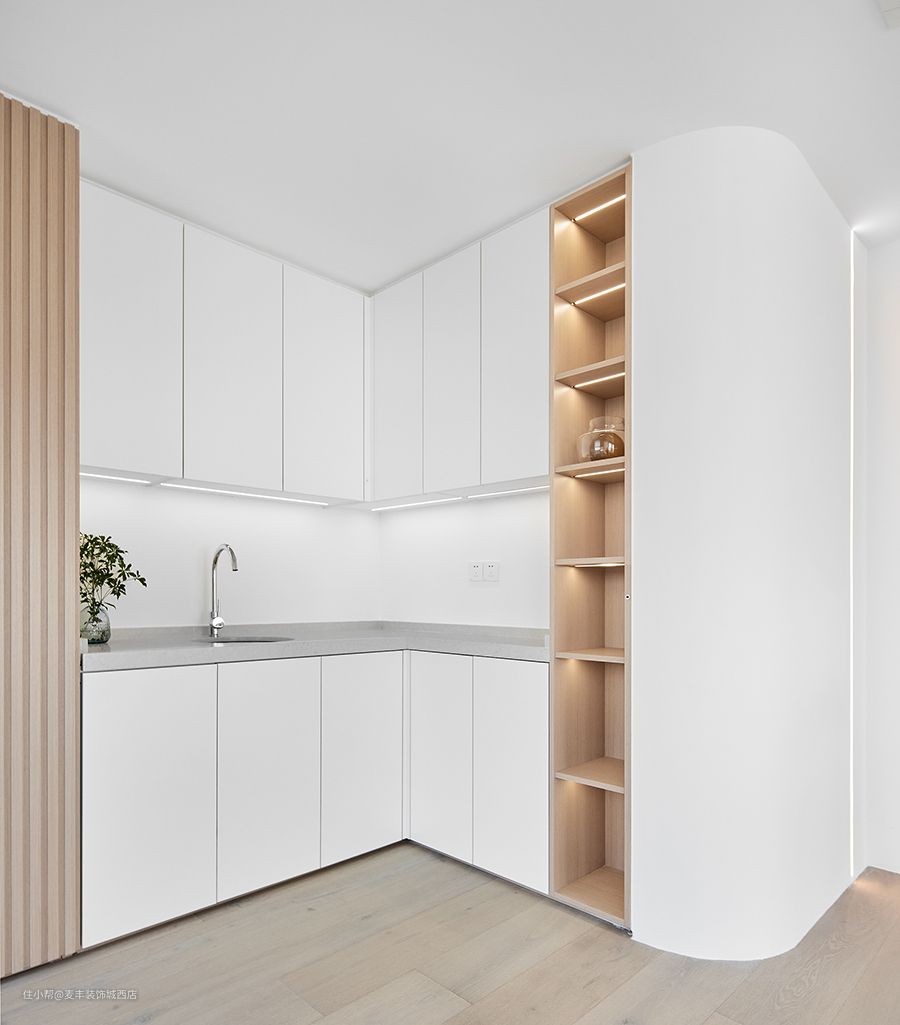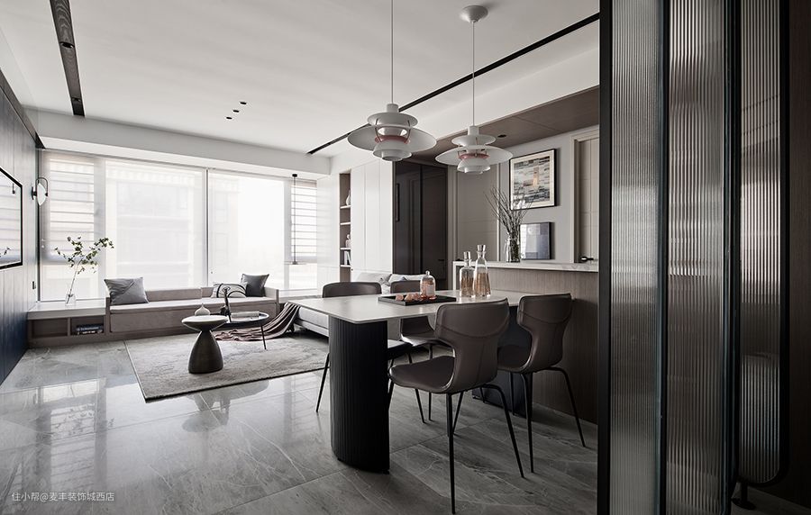 两边对等的U型金属线条用于摆布两边没有凹凸差的平面,可以或许加强空间的均衡感和纵深感,