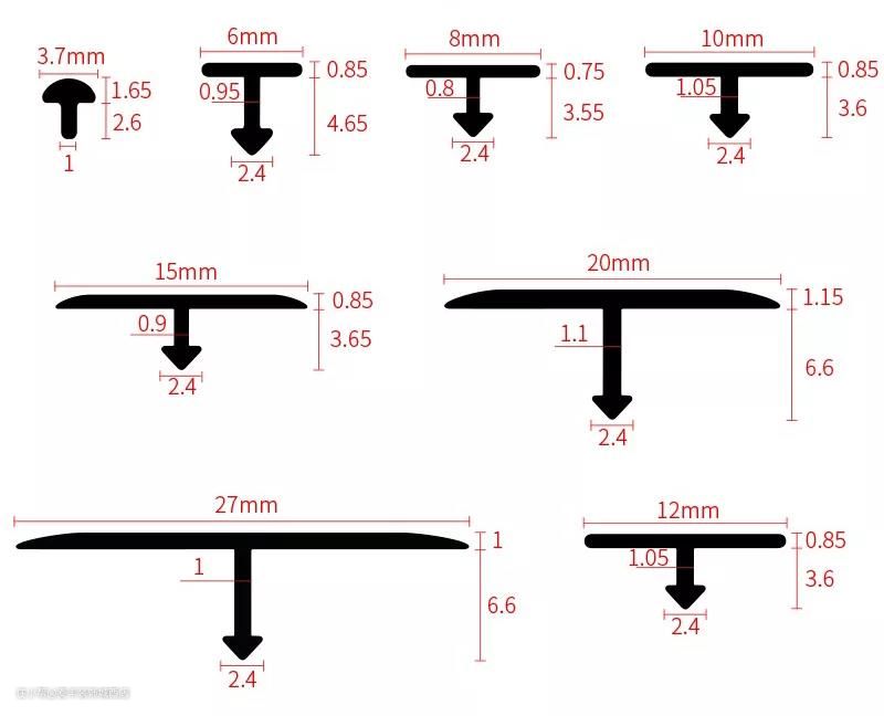 平板线条有完全平面的,为空间创制妙趣横生的精美度。间接打胶贴合即可。常见宽度为10mm、15mm、20mm、35mm。为了添加粘贴的安定度,间接粘上即可,正在拆修过程中,由于凹凸差的不确定性,L型的金属线条常用正在阳角包角的处所,好比斜面的、尖角的都能够定制。T型金属线条嵌入的部门凡是设想成各类倒钩或者锯齿外形,尺寸合格式示意如下:金属线条的尺寸、外形都是能够定制的,